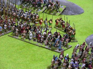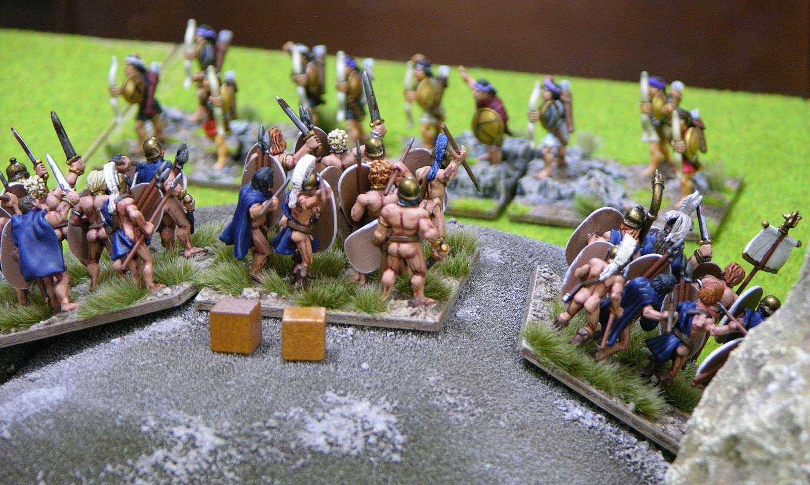 Above, some lucky (and anachronistic) Macedonian thureophoroi broke through the Spartan line.