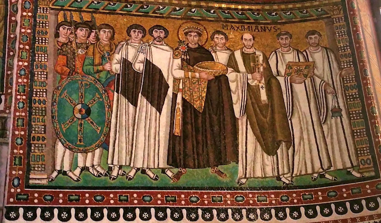 Above is the photo of Emperor Justinian, with religious figures on the right and guards on his left. It has been suggested that the bearded figure immediately to Justinian's left is Count Belisarius, which is partly why I wanted to see the mosaics! I very much hope to raise a Belisarian Byzantine army at some stage. The shield is stunning, such vivid colours.