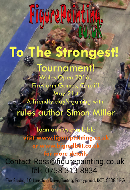 The scale is 28mm- if you don't have an army Ross, friends and I will be able to loan you one. Because no re-basing is required, it is a great opportunity to dust off that WAB or DBx army that hasn't seen action for a year or two. I will assist with writing your army list. There will be a trophy and prizes.