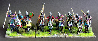 Here are the cavalry from my small Assyrian force. The miniatures above were professionally painted by Phil Riley of NyrOld, and the below are partly and eBay purchase, and partly by me. Phil's are excellent, and the others aren't too shabby, either. When time permits, I'll slap some decorative bands on the helmets, and some more tuftage and dust on the bases, so that they match my current standard.