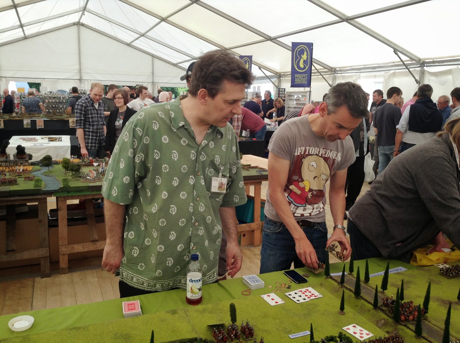 Lawrence and Tricks, the Partizan organisers, did a fantastic job of moving the event to the marquees, on such short notice. I absolutely loved playing in the tents, and would be delighted to put on a game in them again. I fear that the additional cost and the risk of bad weather may preclude this, though... I hope there will be room for me, in tent or hall, in September!