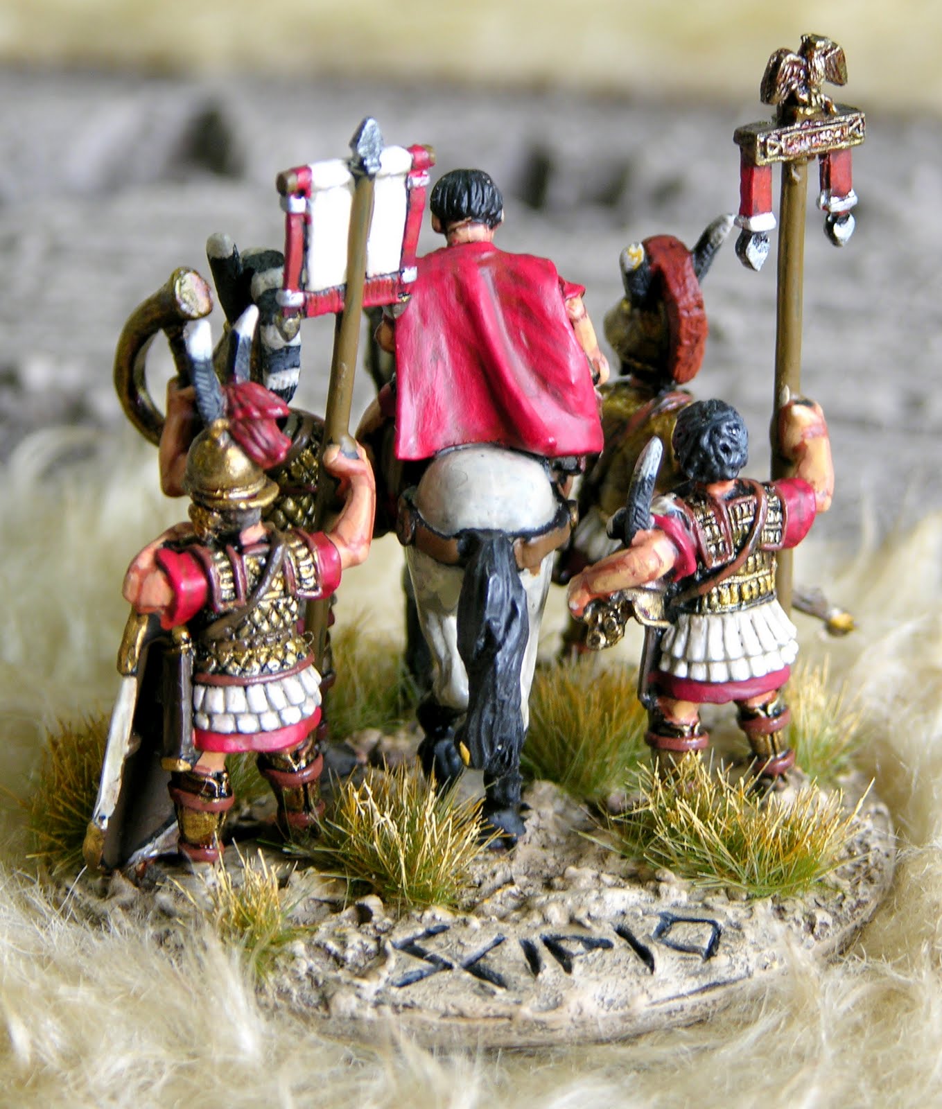 Here's the first of four Command stands, painted by Nick Speller and based by me. Scipio is the overall Roman commander, and an excellent tactician, who hammered the final nail into the coffin of Carthage at Zama.