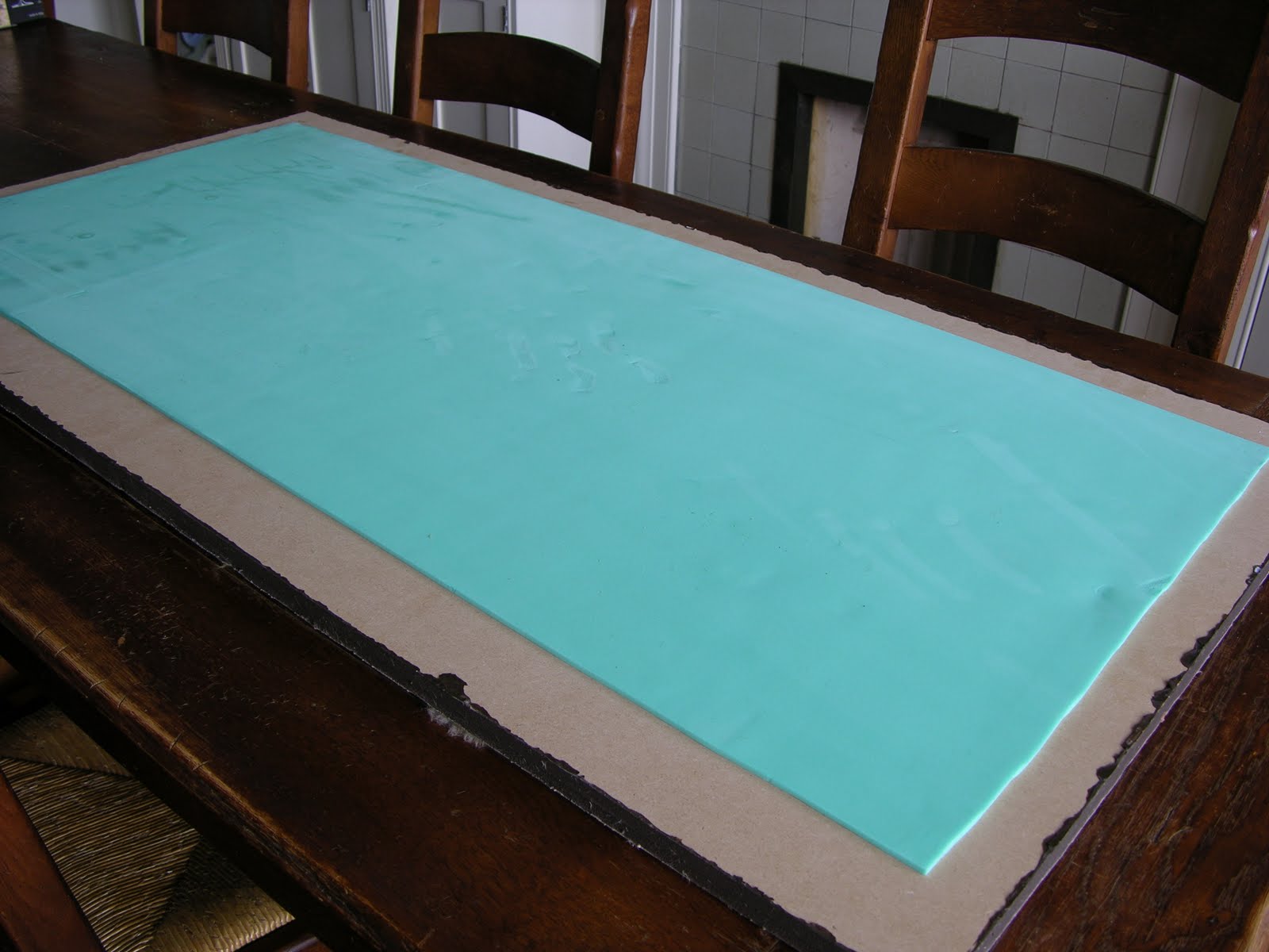 Yesterday I raided the local pound shop, and bought enough camping mats and doublesided tape to put a padded backing on each of the boards, as below. I'm hoping that this will protect the surface of the boards when they are stacked up against each other, and protect my table top, too. It only cost £1 GBP per board!