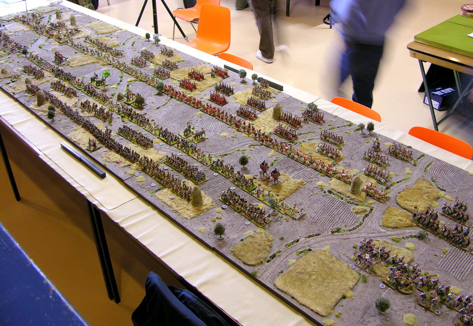 Here is a view along the battlefield from behind the Carthaginian left rear. If you look carefully, you can see the ladders on the haystacks!