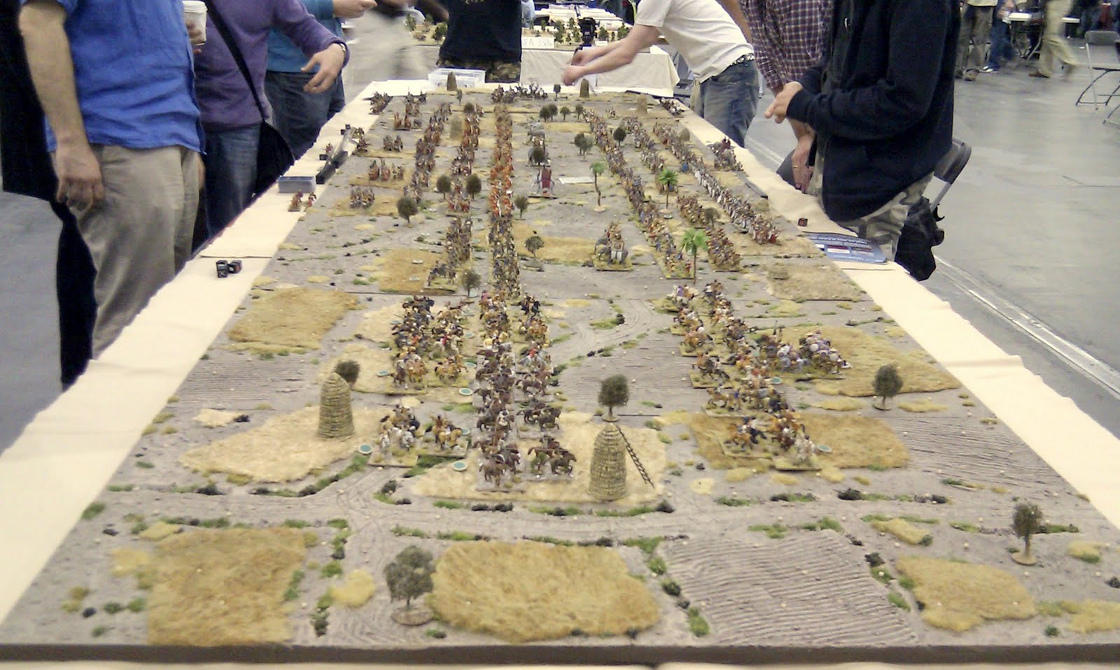 My son Harry, his friend Alex and I arrived at Excel at 7:01, but it took over 2 hours to get in and finish setting the game up. Various militiamen arrived with their contingents; Ian and Dr. Simon from Muswell, Craig from Leeds, Nick and a friend from Essex. The doors opened at 9:45 and we kicked the game off at 11.00 with the assistance of conscripted players who included another Simon, Chris and Dirk (apologies for missed names here, I have a terrible memory for names and faces). Many of the players were novices but they picked the rules up quickly.
