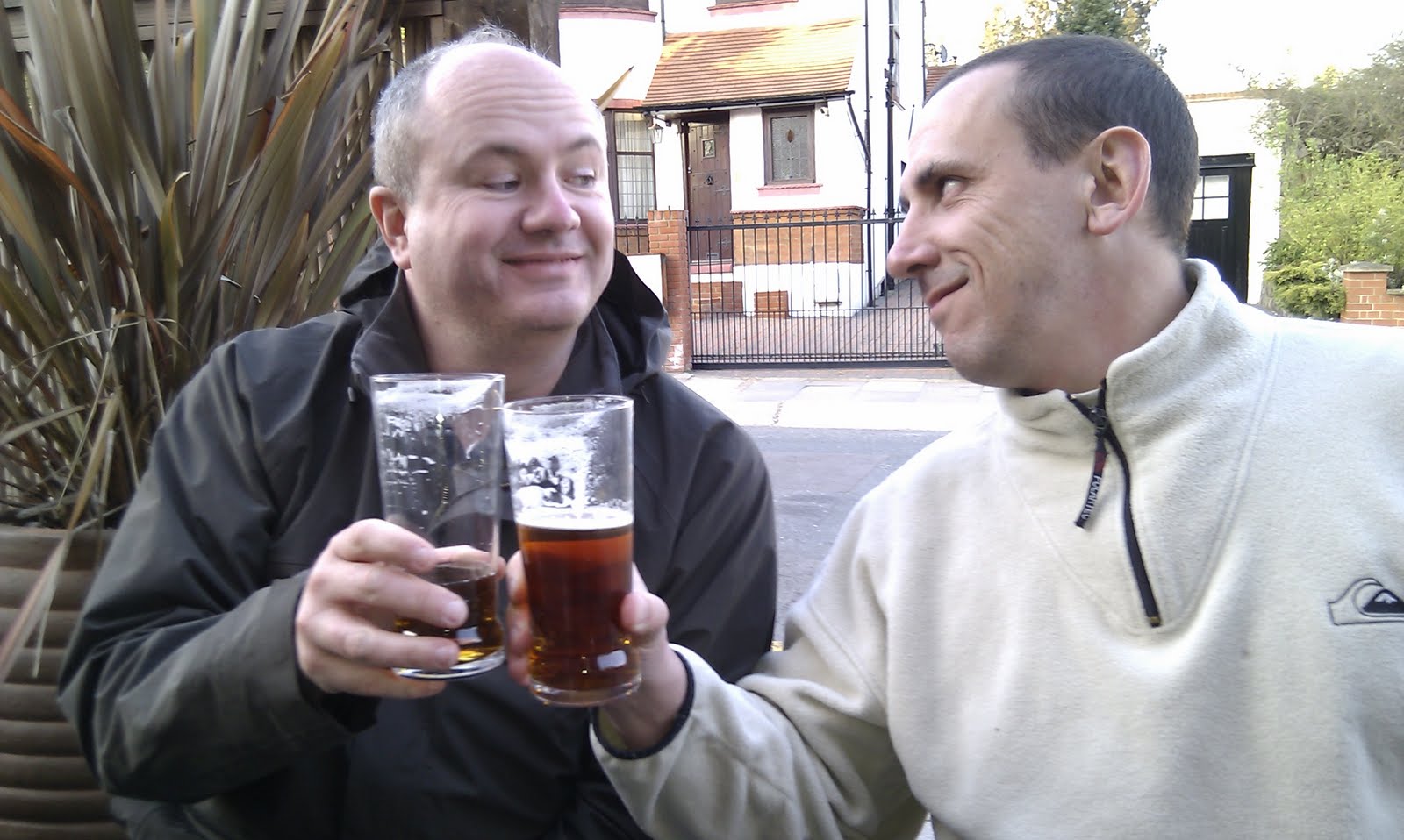 Muswell Hill Militiamen (Paris chapter) drinking beer outside the Maid of Muswell pub, our spiritual home.