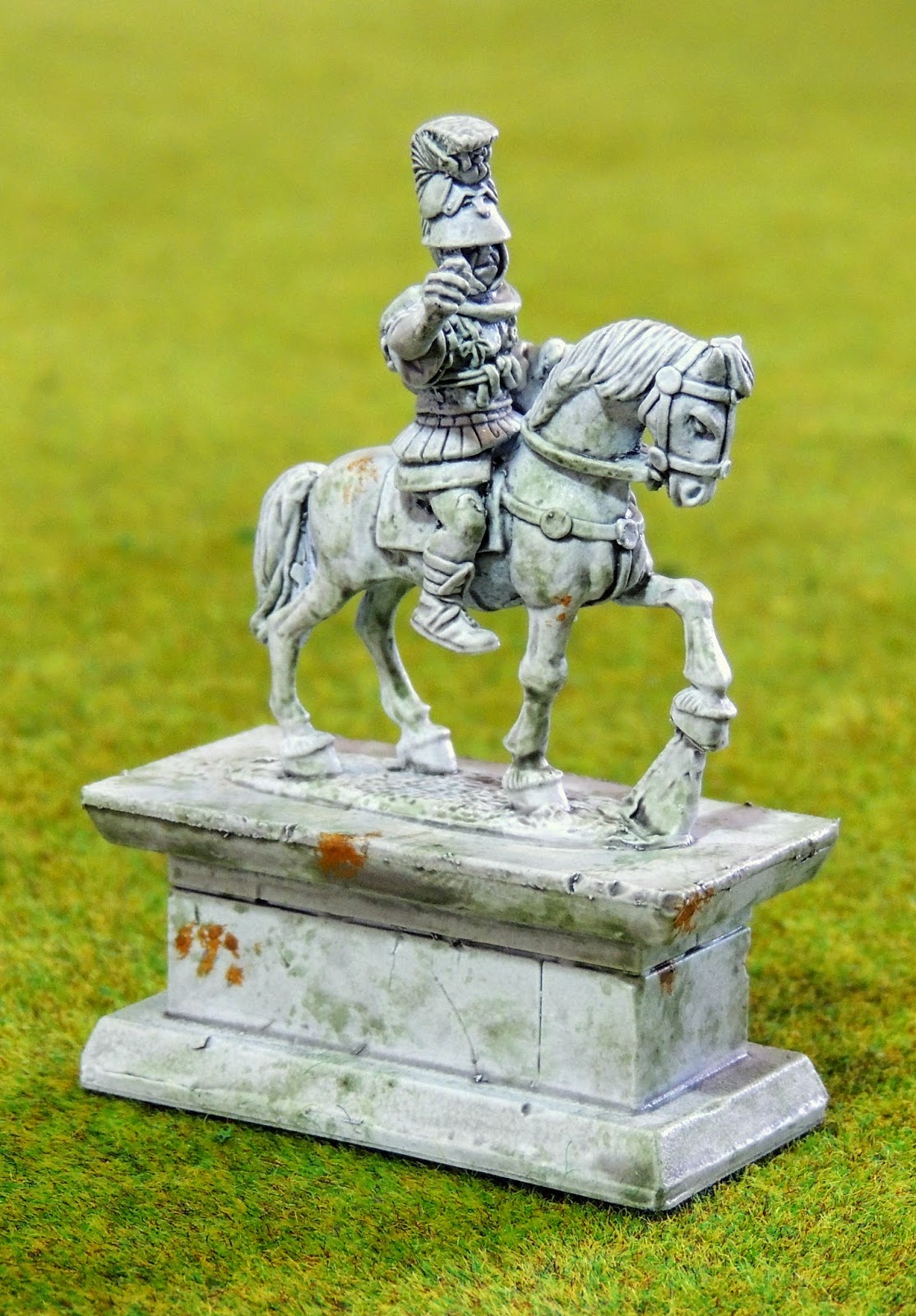The figures are lovely Aventine Miniatures; they look suitably archaic and the pose of the horse is just right for an equestrian statue.