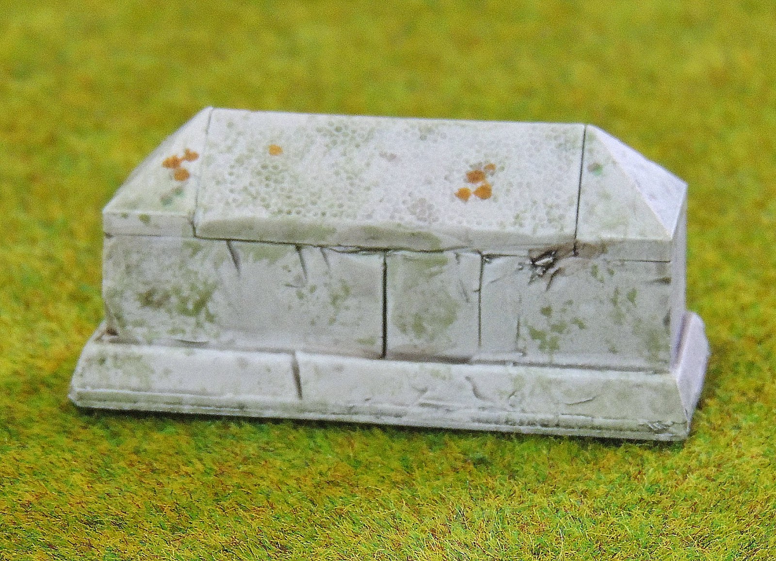 They were sprayed white, stained with inks and I then "applied" lichen and moss to age and weather them.