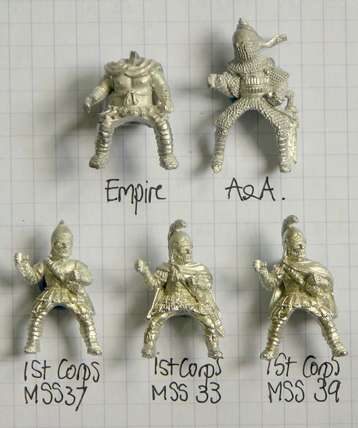 Finally, we have the riders. Please note, the Empire rider has a separate head (not included). The A&A and Empire riders are larger than the 1stCorps, but would probably work in different units. Thanks very much to 1stCorps, A&A and Empire for the sample miniatures.