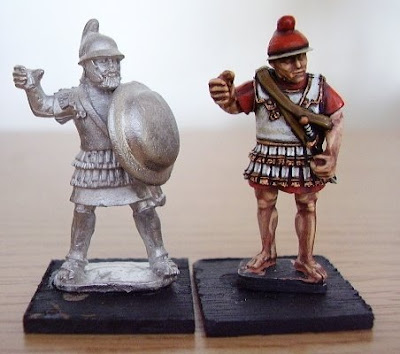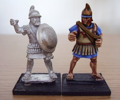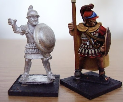 Mario Kkounnous of Empire Models (http://www.empiremodels.co.uk/) has been kind enough to send me some size-comparison shots of his new range of miniatures, and some crisp samples which look really nice and which I intend to pore over, later tonight- I'll post a brief review in due course. The figures on the left in each photo are from the Wargames Foundry World of the Greeks range, and the painted figures on the right from Marios' new range.