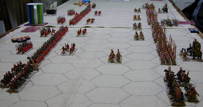 Below is the deployment. The Romans on the left were led by Ian and George, and the Italian Greeks and Macedonians by myself as Phyrrhus, with Chris and Dr Simon on the wings.