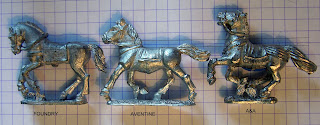 Keith at Aventine very kindly sent me some samples of their new Etruscan/North Italian range, which I will be reviewing and painting in a few weeks time. In the meanwhile, I thought people might find it useful to see how they compare with some other manufacturers ranges, and also to see how their horses compare with other manufacturers. All pictures are clickable.
