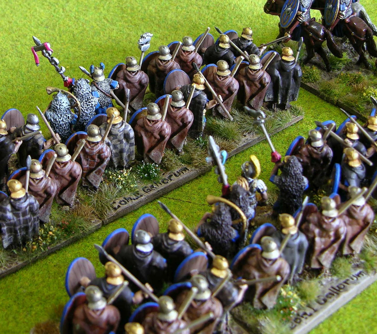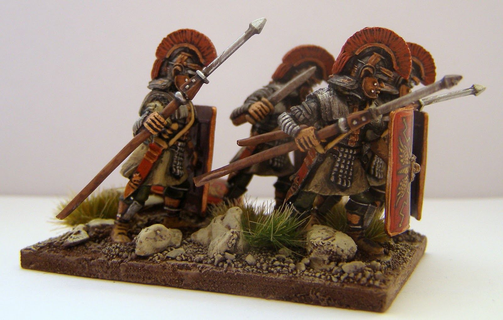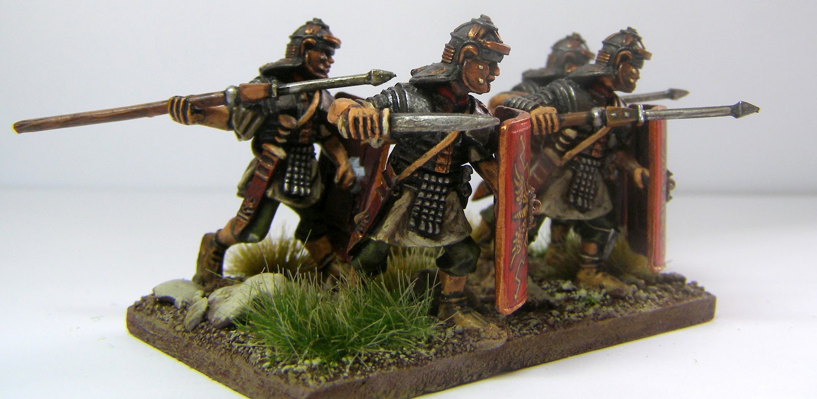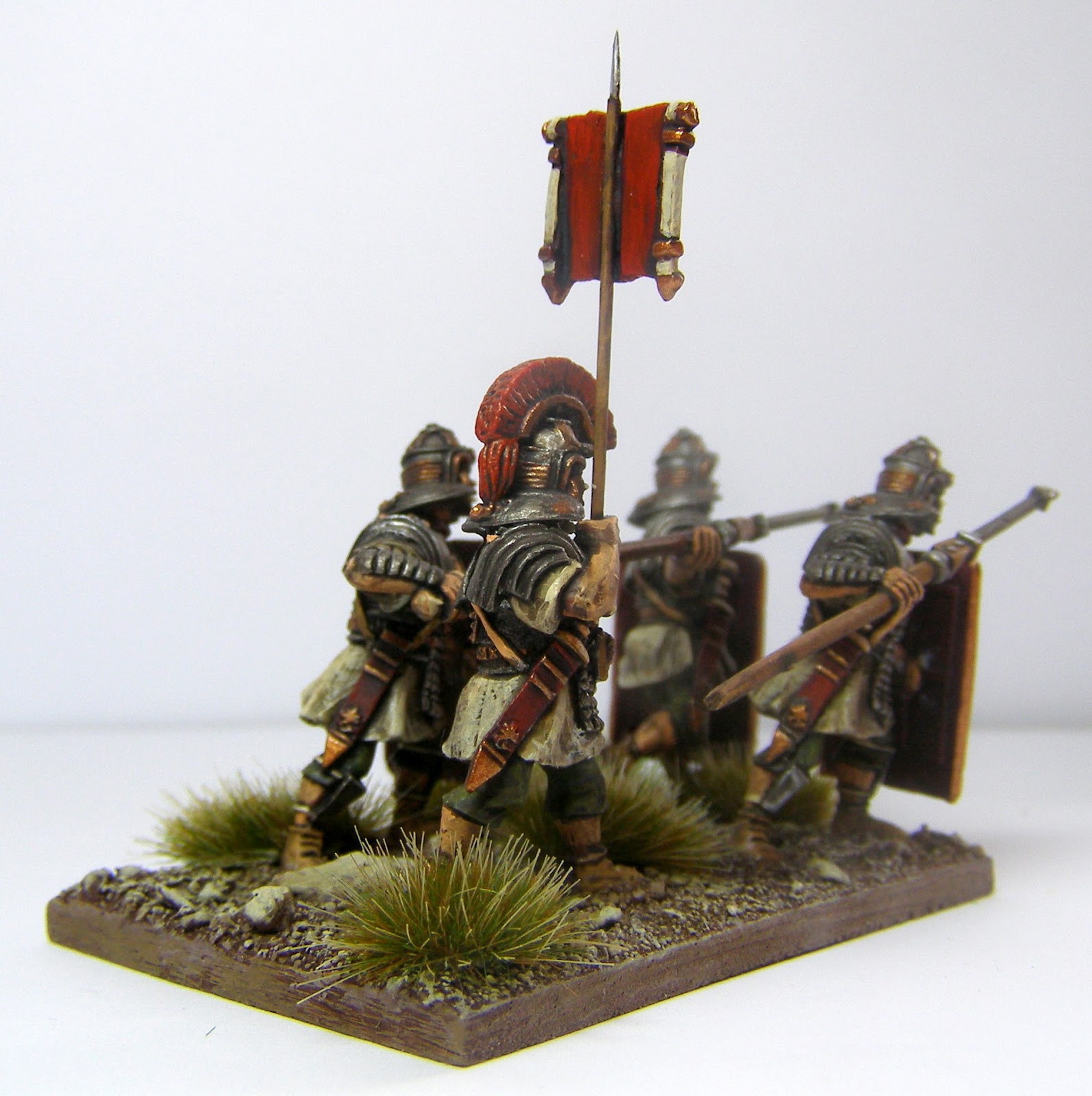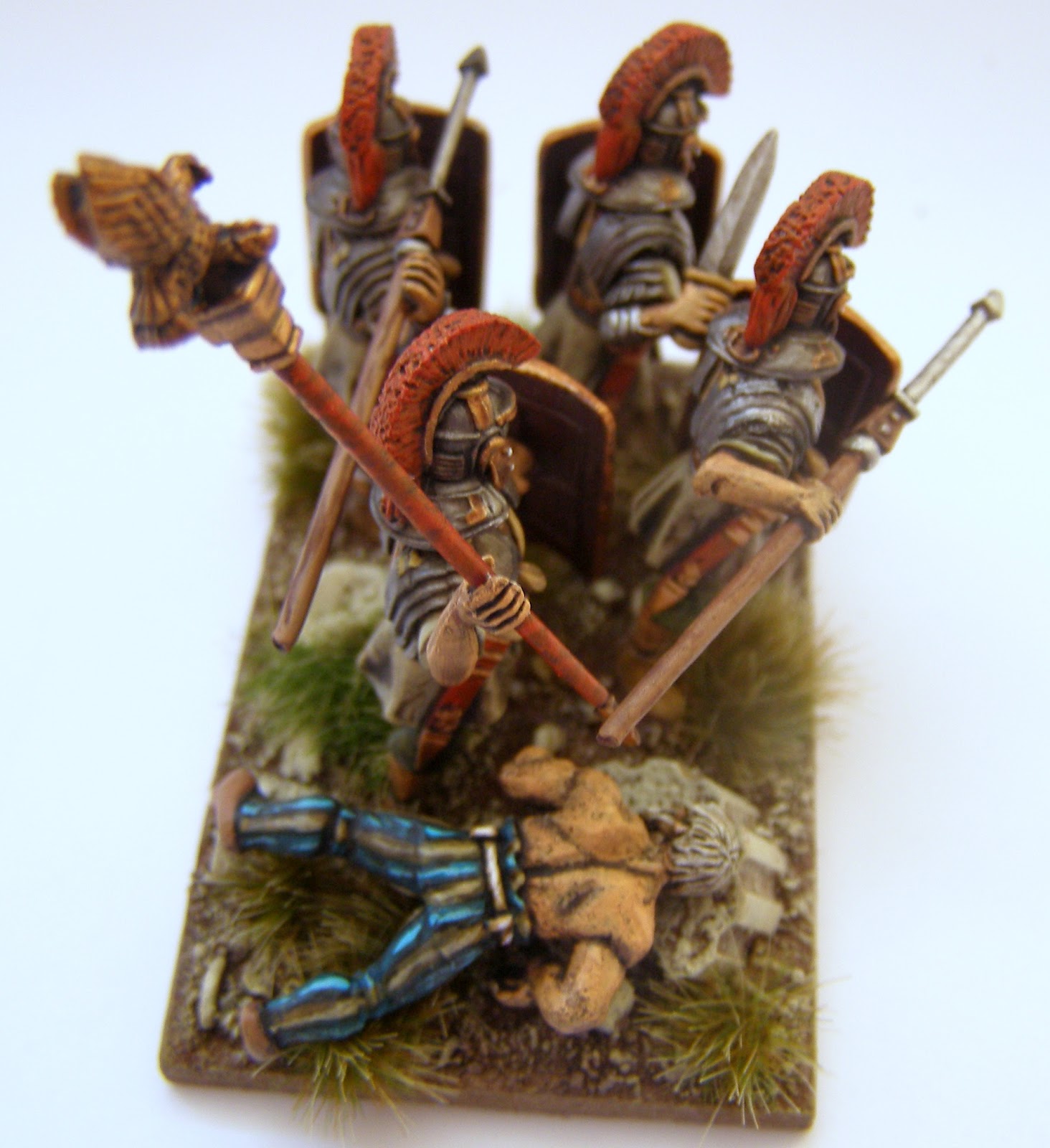 These are all head-swaps on the standard legionary bods, as Gordon wanted an entire unit with crested helmets. He has added some Foundry casualty figures.