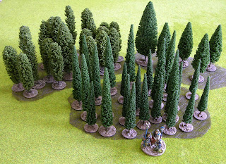 The historical battle occurred early in the year of the four Emperors, when Vitellian auxiliary forces set up an ambush in woods near the shrine of Ad Castores, hoping to trap the Othonian cavalry. Unfortunately for them, a deserter betrayed the plan to the enemy, and the entire Othonian army turned up for the party! Above and below, at the outset of the game, the majority of the Vitellian auxiliaries are concealed within woods and vineyards. The unit below is Cohors Hedlium, which I recently bought from a fellow blogger.