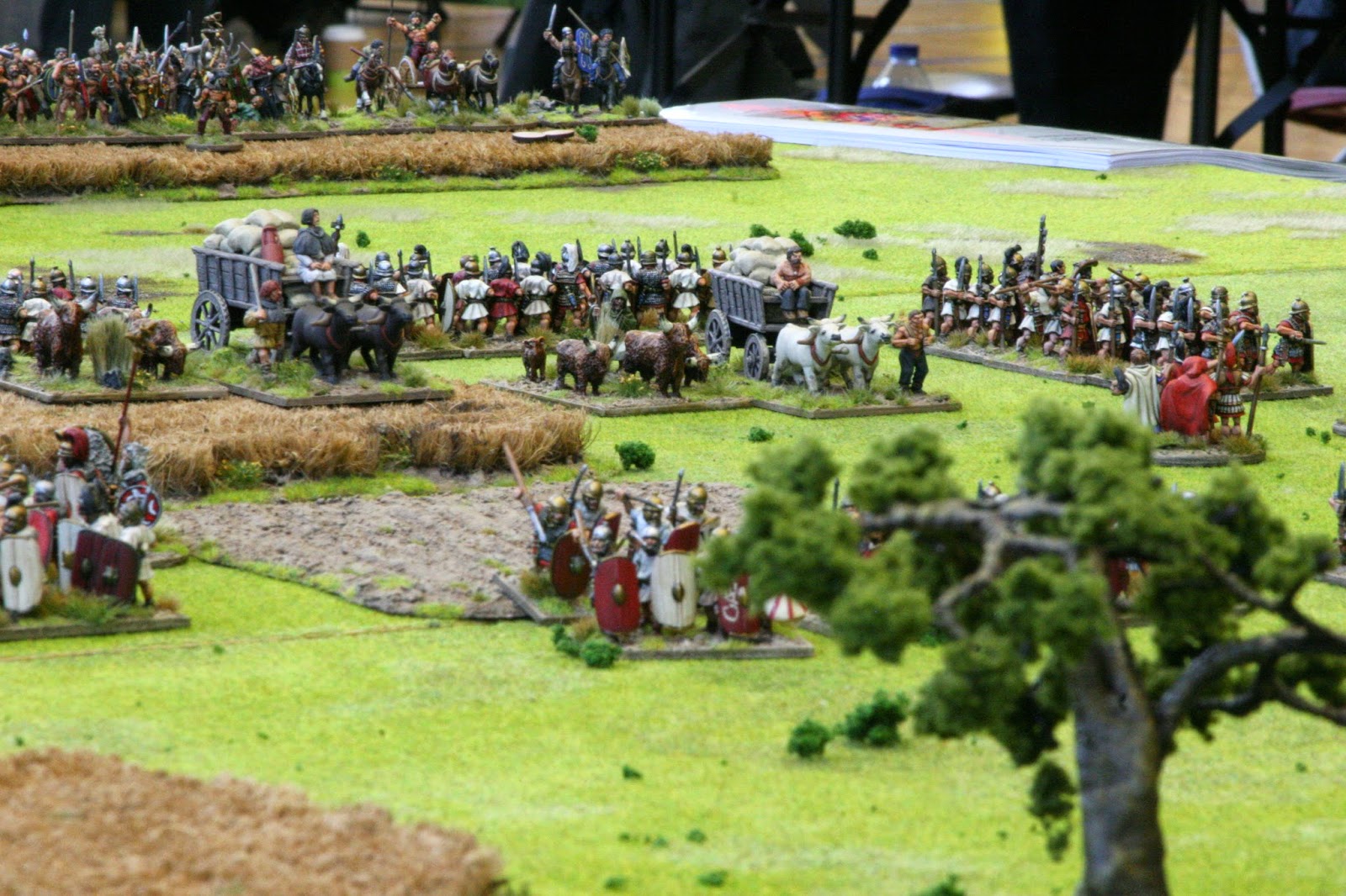 Yesterday I took Caeasar and mate Ian to SELWG. We had a very enjoyable day running my Kent 55 BC scenario, which twice turned into a sort of Roman Isandlwana. The game and rules (my "to he Strongest!") proved particularly popular with kids and their fathers (and one mother). I think at least a dozen teenagers enjoyed it, which is a Very Good Thing! One young Roman commander was called Kaiser, which had a certain symmetry. It was great to see mates including one very old mate, on my last show outing of 2014. The photo above is the only one I managed to take, but I should have some better ones in a few days time.