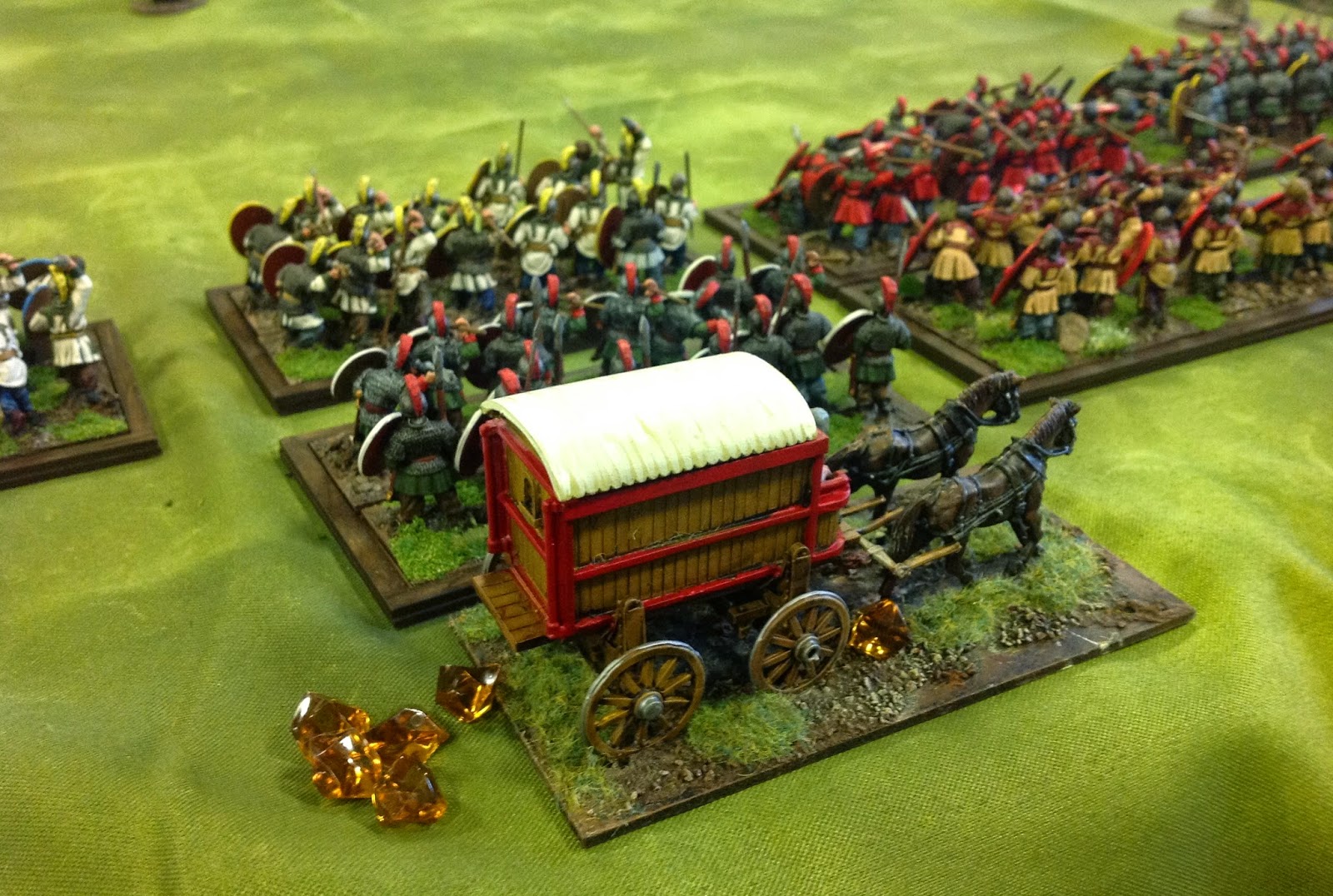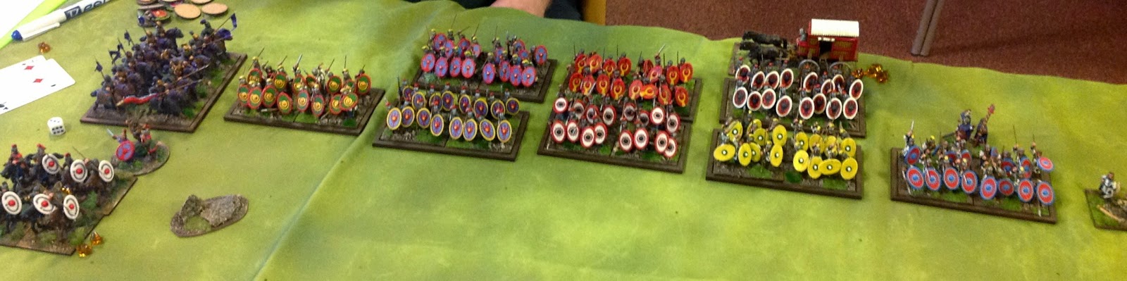 Finally I have a couple of shots of Barry Lee's lovely Late Romans. I particularly covet the Warlord wagon in the above photo. Below, there's nothing quite as good as Late Roman army when it comes to shield designs. Hopefully Barry and I will be able to stage a Late Roman Civil War at some point later this year.