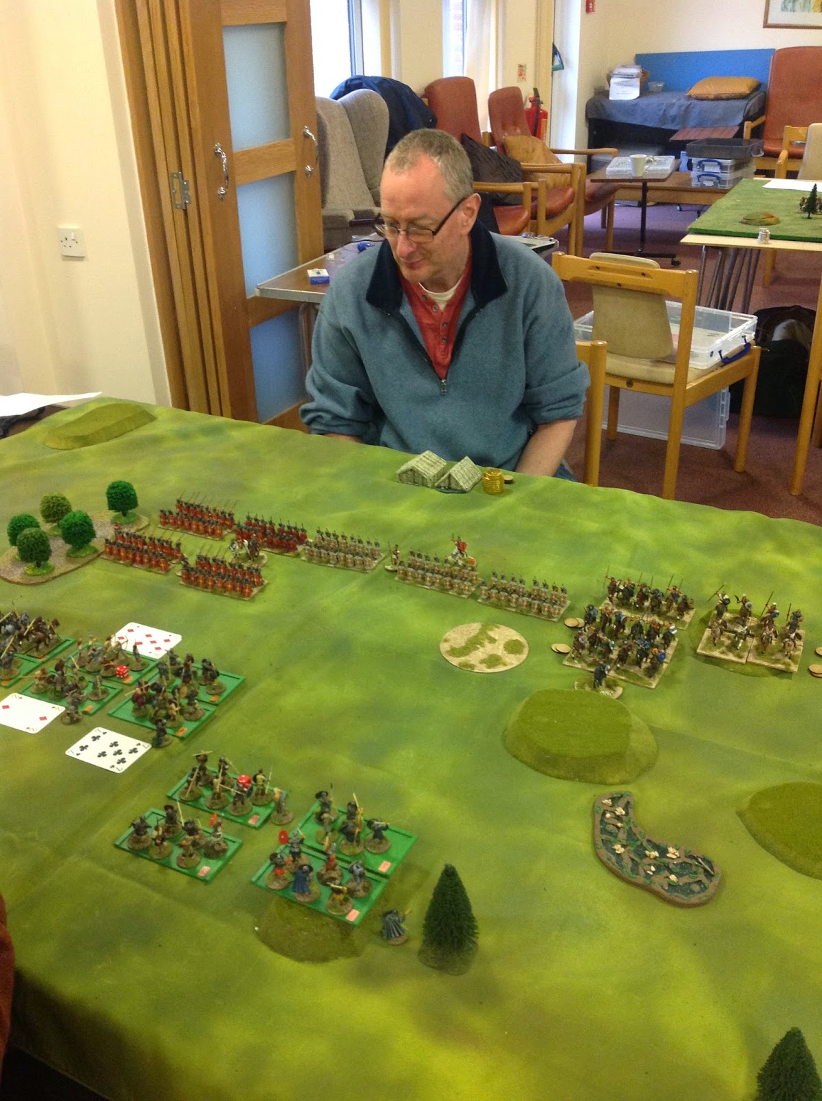 Above Peter Ryding's army of veteran (in two senses) Essex Caesarians proved very hard to kill- my Polybians (played by Ian Notter) seem to be keeping a safe distance! Or maybe it was just early in the game.