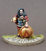 Above is Agesilaus, who I believe was painted by Dave Woodward. Below is another Spartan officer. Note again the new half-round bases.